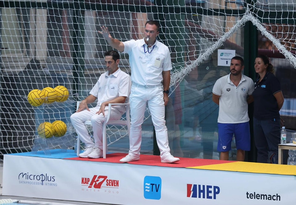 Referee Damian Taylor and ladies from Watford Water Polo Club in action supporting the GB training session.